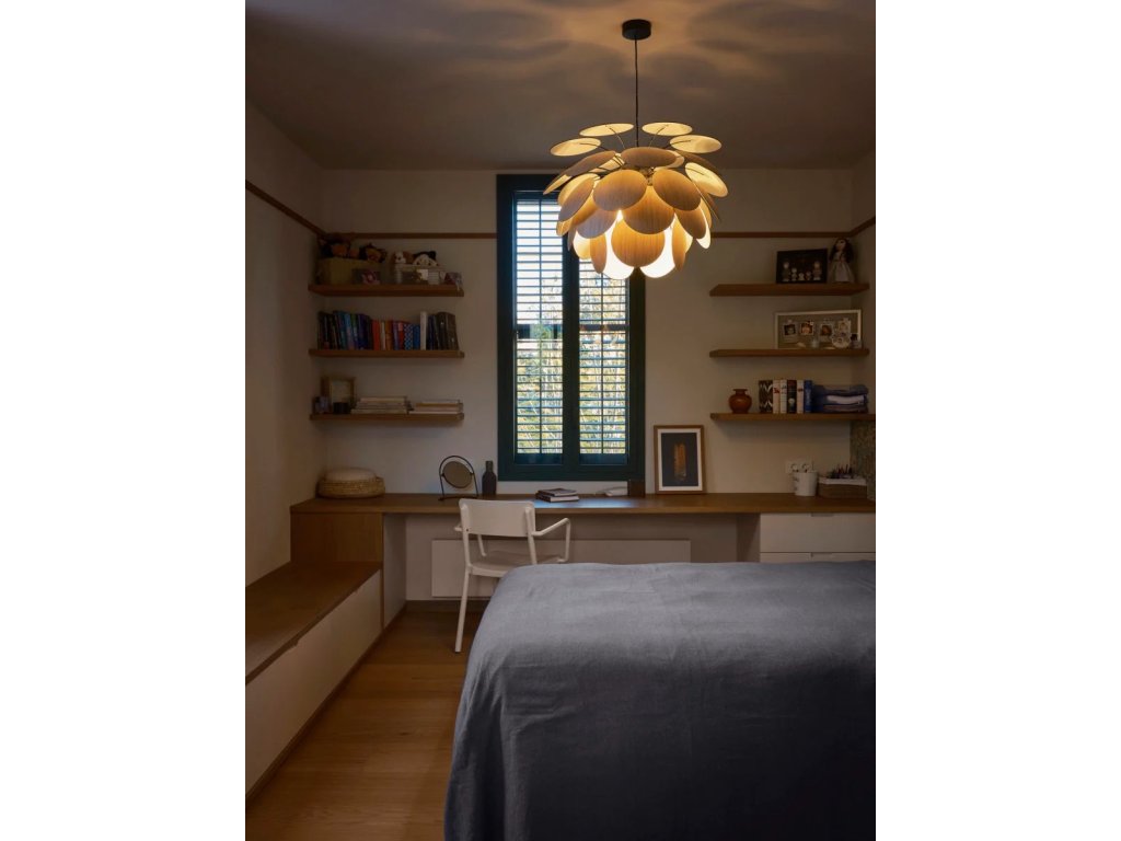 Neviazaný vzhľad Discocó pendant, inšpirovaný rozkvitnutou kvetinou navrhol Christophe Mathieu, dizajnér značky Marset. Podarilo sa mu vytvoriť svietidlo, ktoré na seba púta pozornosť aj v zhasnutom stave.