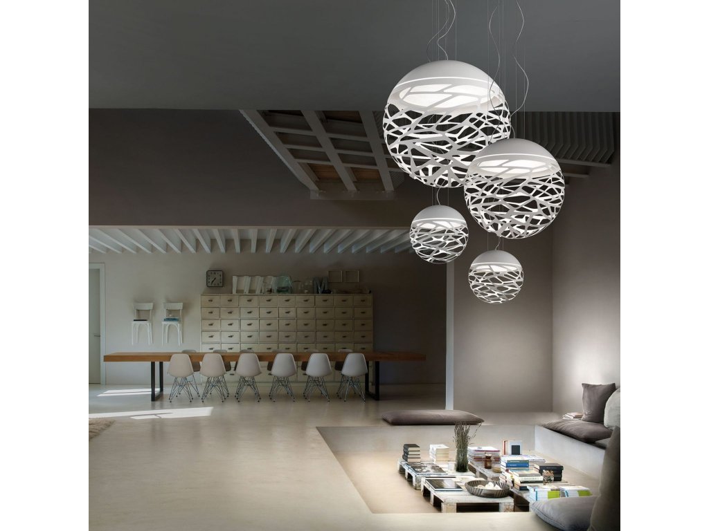 - Závesné svietidlá – Ikonické modely, ako napríklad Random alebo Sky-Fall, kombinujú čistý dizajn s rafinovanými detailmi.