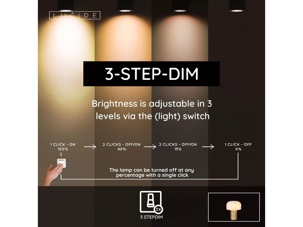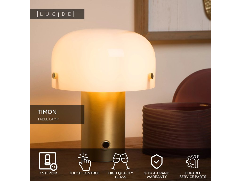 3-stupňové stmievateľné svetlo s dotykovým ovládaním priamo na základni lampy – jednoducho nastavíte jas podľa nálady či situácie.